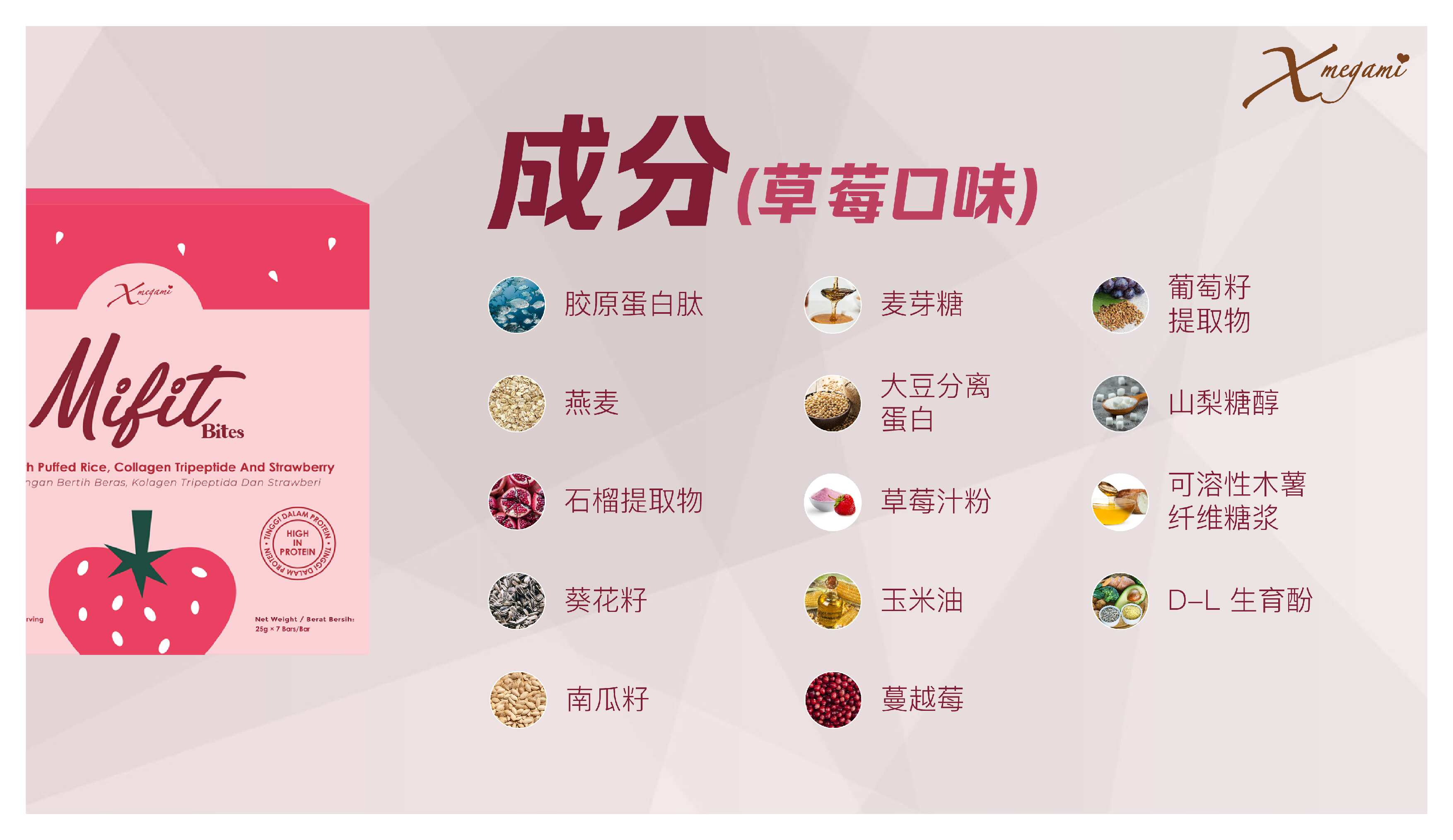Mift Bites是全马首创的美容蛋白棒 富含营养成分的零食 强调胶原蛋白 纤维 优质碳水化合物和脂肪酸 蛋白棒的不同之处在于它采用了冷压技术 保留了醇和的营养价值 Mift Bites的口感带有嚼劲 且山梨糖醇为核心 能满足饥饿时对甜食的欲望 为了满足您的味蕾 Mift Bites含有两种口味 柠檬与草莓 让你一天换一个口味不是问题